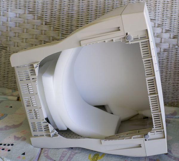 Wearable monitor head created using a real monitor! This monitor has been cleaned up and transformed into a wearable monitor helmet. Great for music videos, events, DJing, parties, and more.